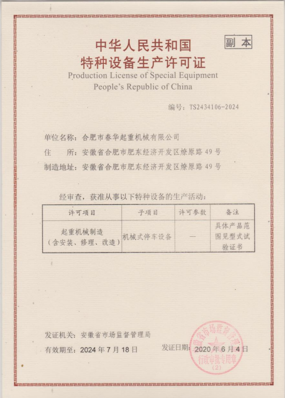 特種設(shè)備生產(chǎn)許可證